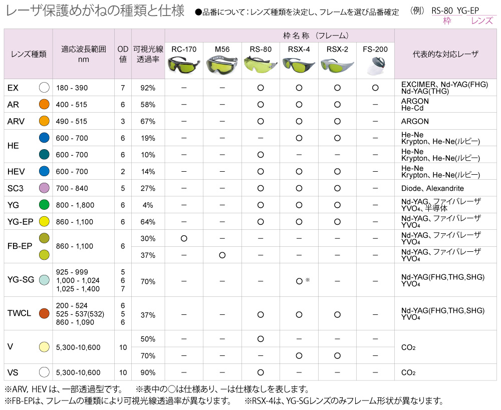 レーザ光のような特定波長をさえぎるレーザフィルタは、光を透過しないほど目には安全です。光の透過をあらわす透過率がゼロに近くなると、小数点以下の桁数が増えます。吸収度合をわかりやすく対数であらわしたものが、光学濃度 OD値(Optical Density)です。透過率との対応が下表になります。