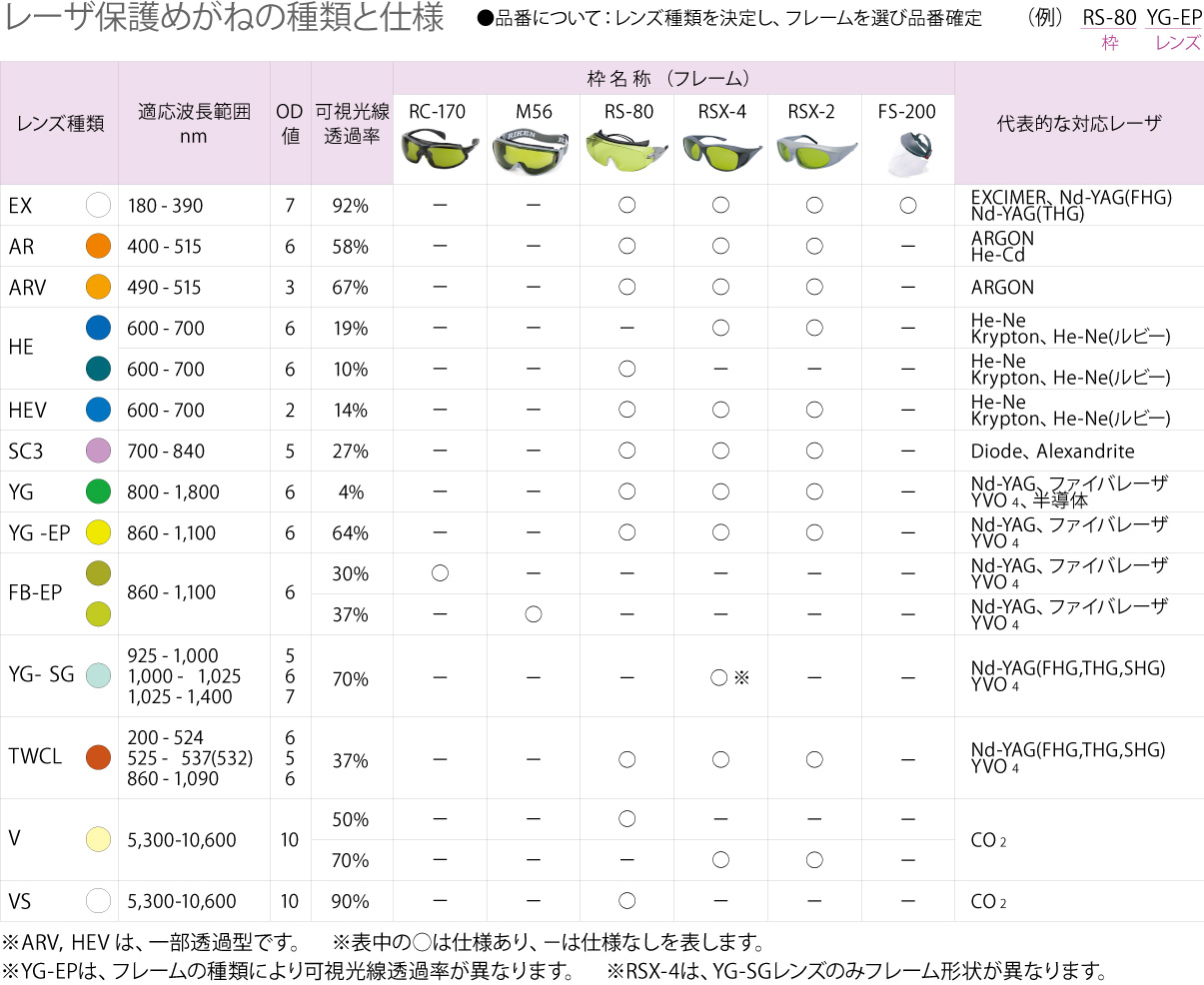 レーザ光のような特定波長をさえぎるレーザフィルタは、光を透過しないほど目には安全です。光の透過をあらわす透過率がゼロに近くなると、小数点以下の桁数が増えます。吸収度合をわかりやすく対数であらわしたものが、光学濃度 OD値(Optical Density)です。透過率との対応が下表になります。