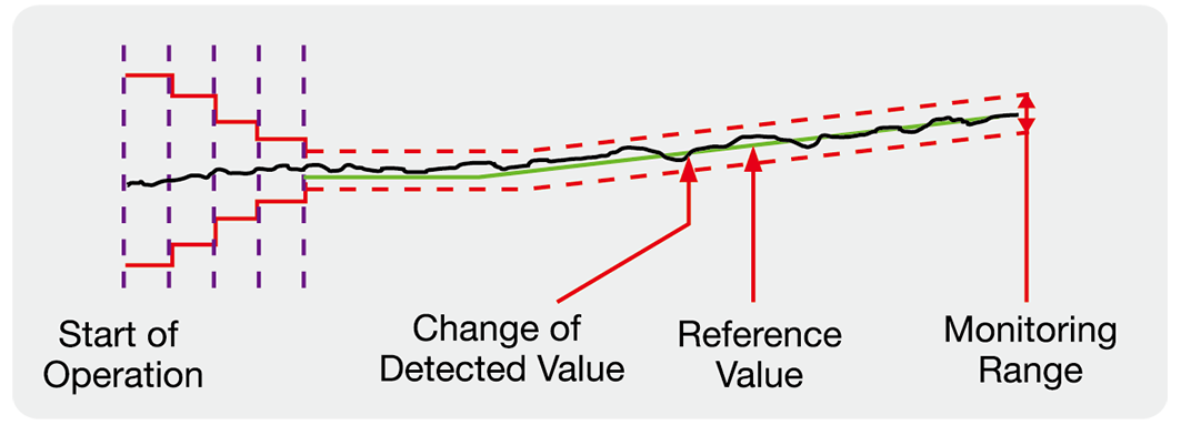 This function enables to detect properly, canceling the effect of changes in materials, temperature, oil, etc.