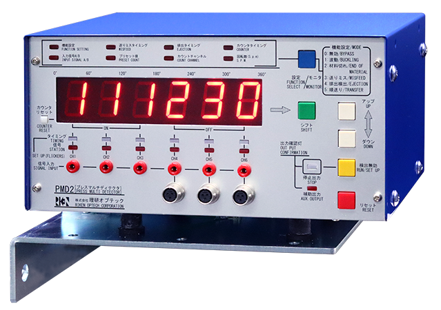 PMD-2 (Press Multi-Channel Press Malfunction Detector) has realized a high-performance and multi-monitoring system with our long experience and advanced technology in line with the diversifying automatic progressive press working. A variety of functions incorporated in each channel can be called with a simple operation and build a required detection system according to the processing methods. The multiple detection function monitors the automatic progressive press operation from various angles to prevent breakdown of dies and production of defective parts.